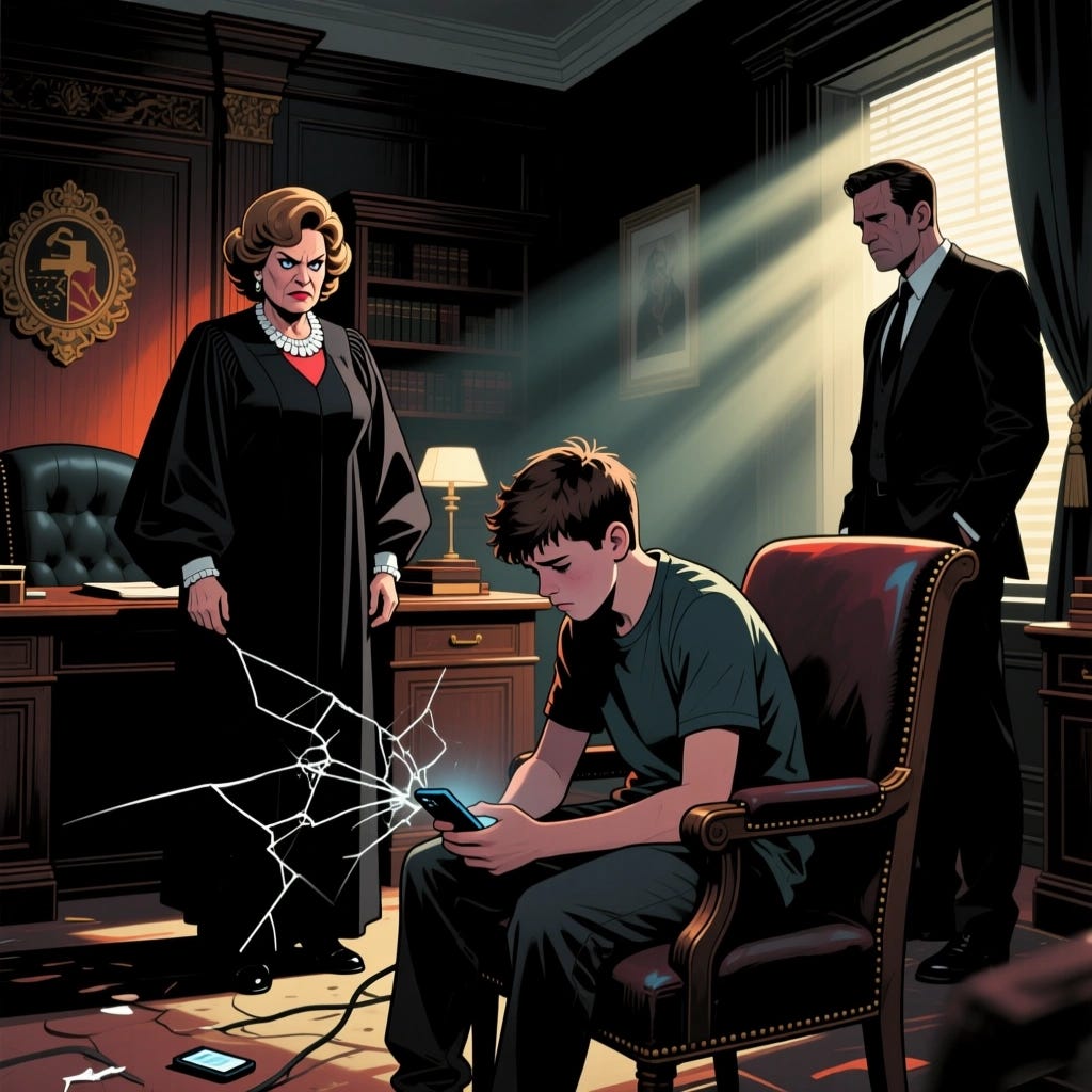Mark’s mom, Judge Judy, finds out. She’s furious. To satisfy her sense of justice, she decides someone has to be punished. But instead of punishing Timothy who did it, she punishes Mark. She grounds Mark, takes away his phone, the whole deal. The punishment happens, Judge Judy’s anger is “satisfied,” and now Timothy and Mark are cool again. In this story, the punishment itself is what fixes the relationship.
