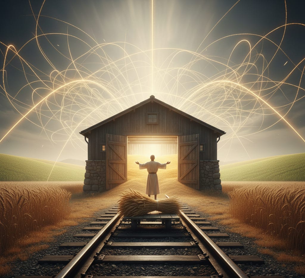 Joseph stands before power. He does not boast. He deflects. “It is not in me; God will give Pharaoh a favorable answer.” The boy who announced his own dreams now announces only the source of all dreams. The gift has matured. It is no longer about his future, but about their survival. He interprets. Seven years of plenty. Seven years of famine. He sees the connection, the coming scarcity. But he does not stop there. The interpreter becomes the facilitator. He lays track from the revelation to the solution: store the grain. Build the reserve. He provides the plan.