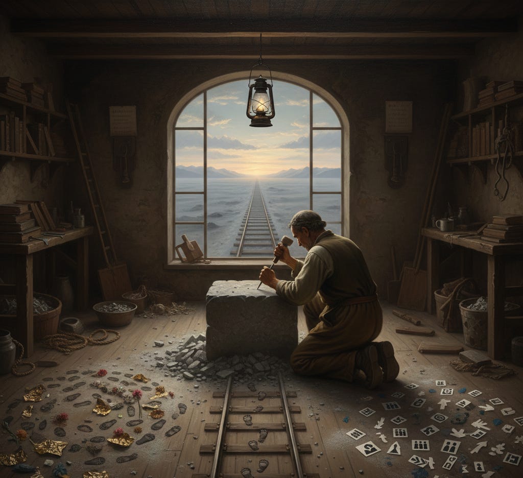 This is the common thread: Formation over information. Heart change over behavioral compliance. Attentiveness over reaction. Our prayer life is the workshop where this happens. It’s where we bring the raw material of our day, our choices, our path, our temptations toward external fixes, our mental clutter, our trials and ask the Master Craftsman to work on it. To show us where we are building with dead letters, where we are chasing fading flowers, where we are letting the noise drown out His signal.